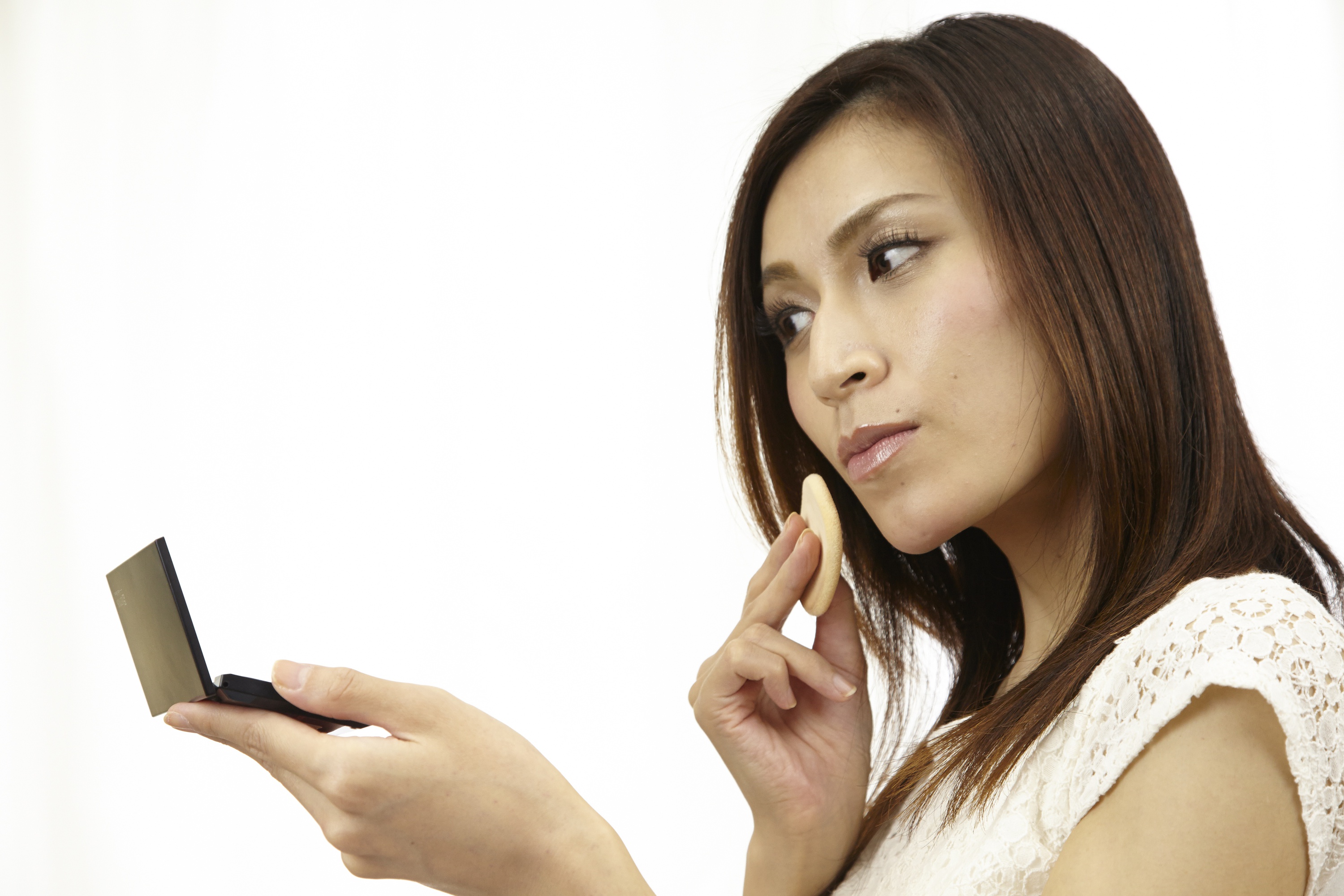 化粧水や乳液で整えた肌に、ファンデーションをのせていきます。しっかりメイクをしたいときには、リキッドファンデをスポンジや指で軽く乗せたあと、パウダーファンデで上からおさえます。